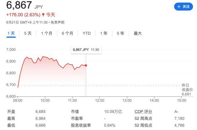 软银日股股价周三尾盘上涨2.82%,报6880日元。二季度以来该股已上涨逾30%,有望创下三年来的最佳季度表现。